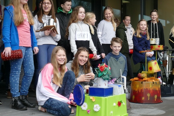 Die Kinder durchsuchten dann Scheunen und Dachböden von Familien und Nachbarn nach Schrott und Sperrmüll, um daraus Perkussionsinstrumente zu bauen. Jedes Kind konnte so ein Instrument erfinden, das seinen eigenen Klangvorstellungen entsprach. Es entstanden so im Laufe des 1. Halbjahres tolle Bauvorhaben mit entsprechend kreativen Ergebnissen.