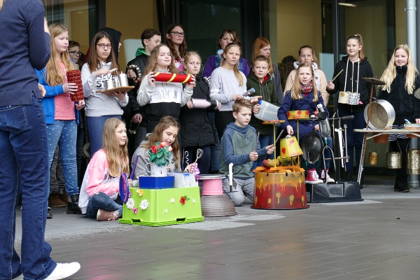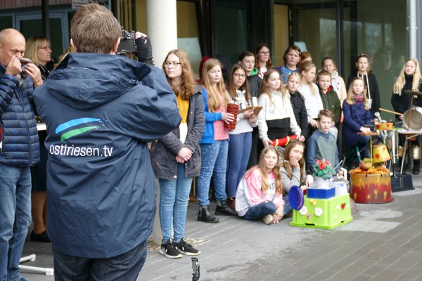 Am 26.03. war es dann endlich soweit: 60 aufgeregte Kinder eröffneten bei leider regnerischem Wetter vor dem Rathaus Ihlow lautstark die Eröffnung der Ausstellung. Dazu spielten sie zum dem Werk „Trepak“ von dem russischen Komponisten P. Tschaikowsky auf ihren Instrumenten. Es war ein voller Erfolg!