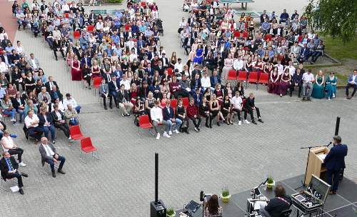 Im Rahmen einer gemeinsamen Abschlussfeier unter freiem Himmel wurden somit insgesamt 115 Abschlusszeugnisse verteilt. Bemerkenswert hierbei sind die Ergebnisse, denn 63 Prozent der HTG-Schüler erreichten einen Erweiterten Sekundabschluss I, der zum Besuch einer gymnasialen Oberstufe berechtigt. Und diese Zahlen, so Gesamtschuldirektor Günter Tautz, seien das beste Ergebnis in 25 Jahren Hermann-Tempel-Gesamtschule.